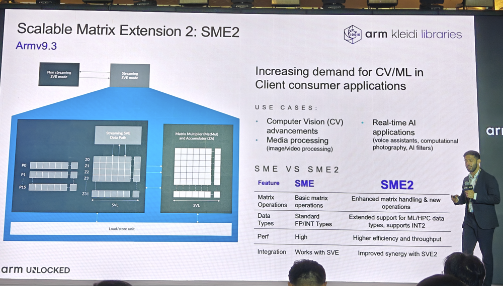 9月10日,Arm UNLOCKED 峰会在上海召开。 Arm在此次峰会上正式发布了面向移动端的 Arm Lumex 计算子系统(Compute Subsystem, CSS) ,包括了全新的基于Armv9.3指令集的C1系列CPU集群,以及支持新一代光线追踪技术的Mali G1 GPU系列。其中,C1 CPU集群均支持可扩展矩阵延伸指令集 SME2 ,极大地提升了CPU对于AI 和 ML 工作负载的支持。