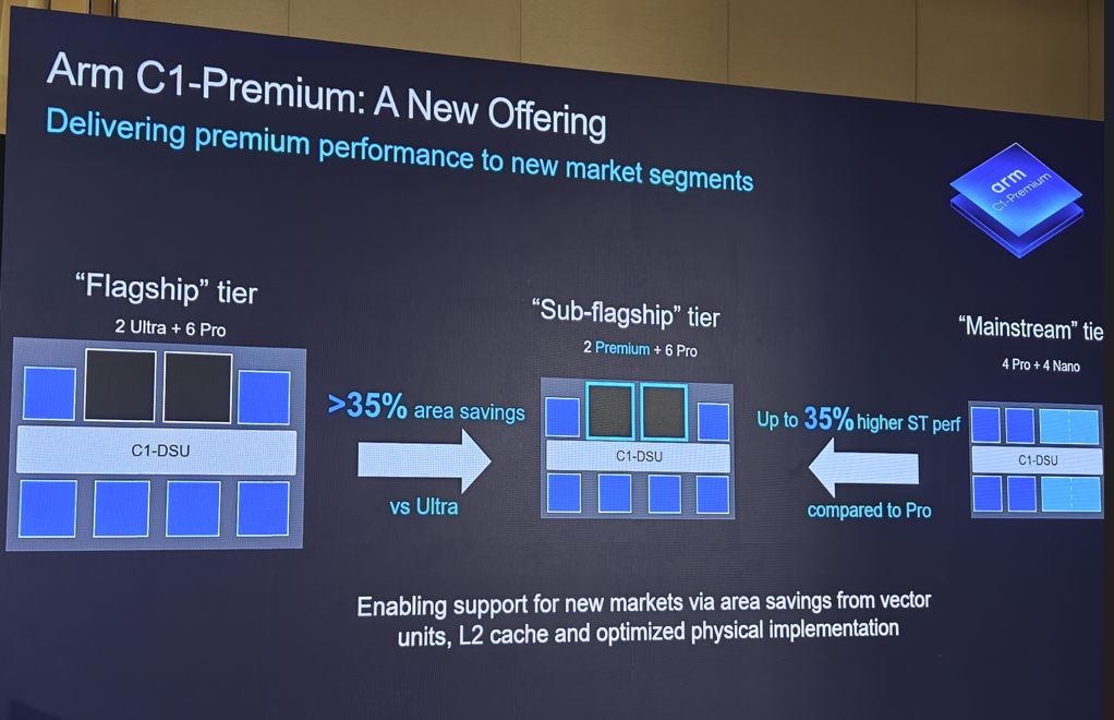C1-Premium是 Arm 首款次旗舰处理器CPU,追求最高的PAA(性能、功耗、面积)。