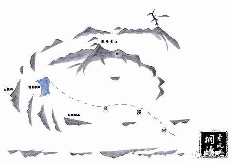金槟榔山,形似覆钟。在风水上,这实际上是一只大鼓。与牙刀相接,又为鼓角。午、丁位情况相若,更起高大鼓角,相牵相连。八卦中属南方火的离卦波状起伏的鼓角大阵,于孙敬贤墓南方约3公里自高至低延伸摆列,隔兰溪河面东北有力拱卫。