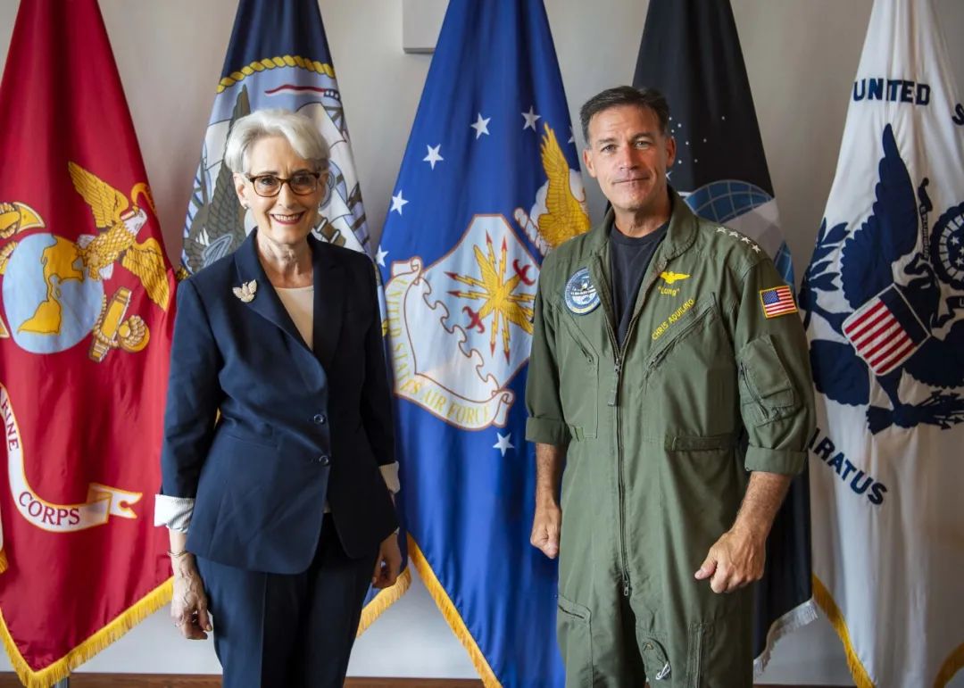 ▎舍曼与美军印度洋-太平洋司令部新任司令约翰∙阿奎利诺在夏威夷会谈,图源:Wendy R. Sherman/Twitter