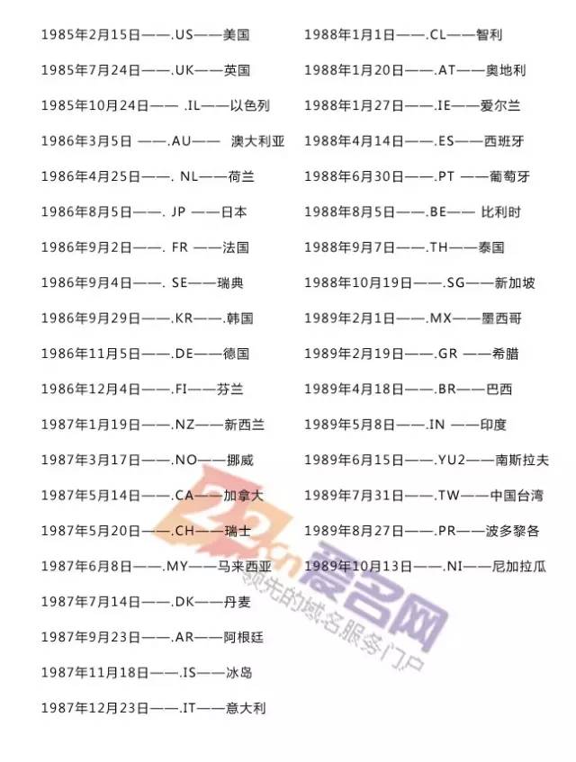 国别域名发展至今,已有上百个后缀。据外媒称,世界上第一批国别域名是在20世纪80年代分配登记的,拥有着悠久的历史。你可能想不到的是,其中最早的国别域名分配登记时间竟然比第一个.com域名的注册时间还早!