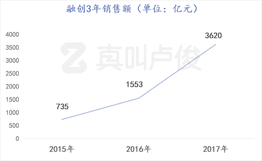 2015年融创销售额735亿,到了2017年,业绩直接突破3620亿