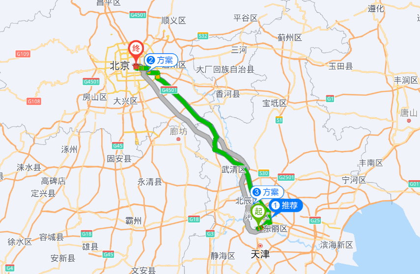 百度地图显示,融创大本营天津距离北京只有134公里,2小时就到了