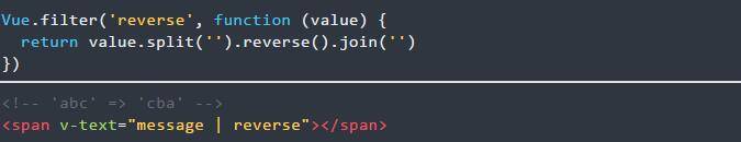 可以用全局方法 Vue.filter() 注册一个自定义过滤器,它接收两个参数:过滤器 ID 和过滤器函数。过滤器函数以值为参数,返回转换后的值。