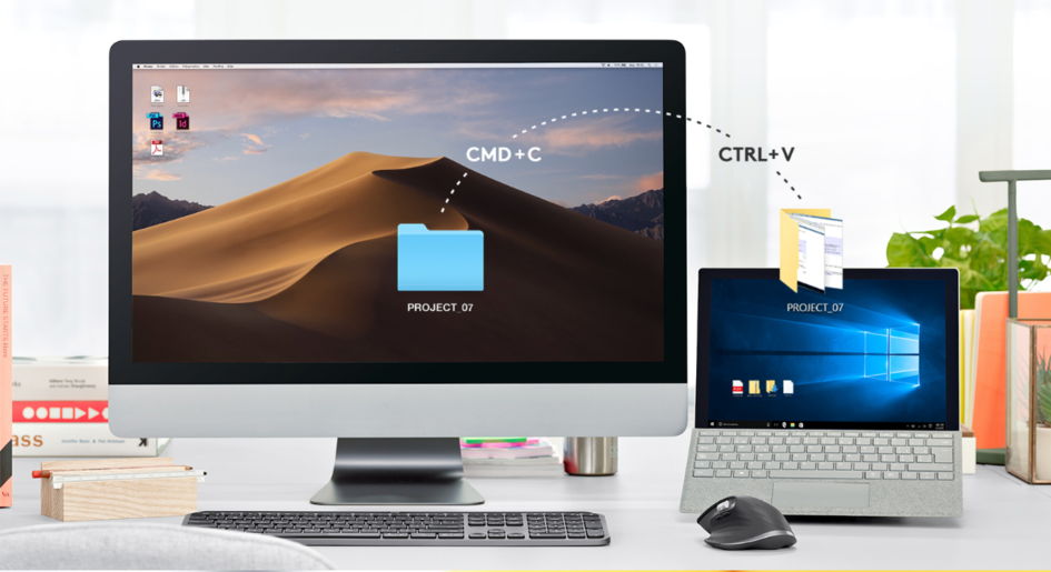 MX Master 系列的 Flow 功能依旧存在,只需将光标移动到屏幕边缘,即可使用支持 Flow 的 MX Master 3 控制多台电脑。甚至可在 Windows 和 macOS 操作系统之间切换、传送文本、图像和文件。