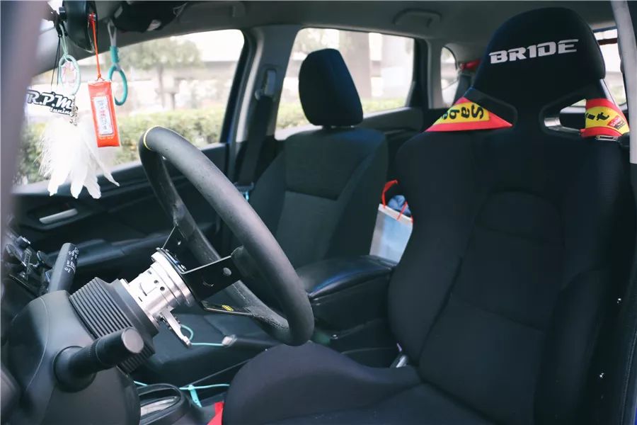 打开驾驶侧车门,Bride赛车座椅、OMP快拆方向盘和废气流量真空表营造了战斗的氛围,副驾驶的Tiffany配色拉环纯属装饰,不过坐在童童的副驾会情不自禁的握住拉环,手拉环才是JDM的“灵魂”。唯一遗憾的是,小黄采用了CVT变速箱,童童表示为了市区代步更省事才选择了CVT版本,传动效率会有一丢丢的打折。为了弥补动力层面的缺失,他花了“重金”给小黄刷了一套GT500的程序。(特别提示:城市路段文明驾驶,飙车上赛道)