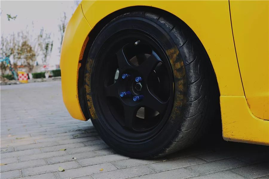 黄色与黑色属于不会失误的搭配,整体亮黄色车身与四只黑色AVID轮毂搭配瞬间拿样儿,BLOX锻造螺丝成为了点睛之笔,AD08R半热熔轮胎预示着别人这不是什么善茬儿,前后一指高的XYZ绞牙避震可以让它贴地飞行。