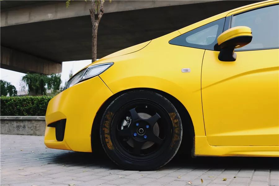 如果以改装车的角度看这台GK5只有一个字——素。虽然素但细节还是非常值得推敲的,台版中网少去了中规车型镀铬的俗气,在特定角度会有一种缤智的感觉。亮黄色的车身使用了改色膜,平整度和收边处理的非常到位,当聊起改色膜时童童特别自豪的说有一半的膜是自己动手搞定的,改装的乐趣不就是自己动手的过程和看到作品的成就感吗?