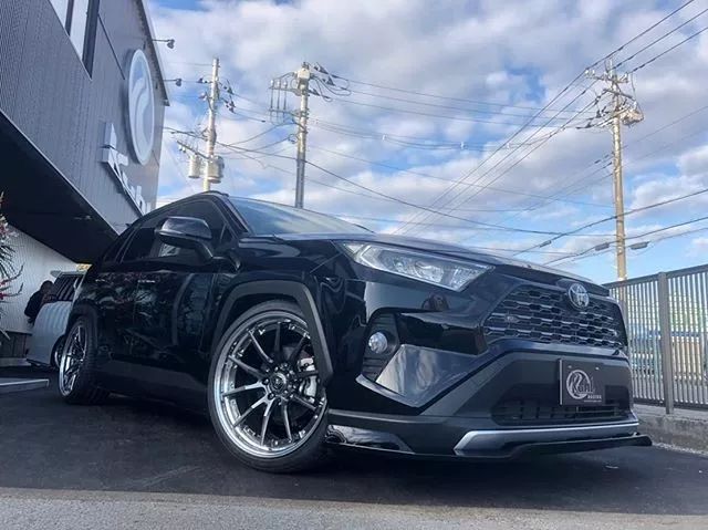 在轮毂方面Kuhl Racing提供来自Verz的20寸KCV01/KCV02/KCV03以及最新款的KCV04等样式轮毂供车主选择,在Kuhl Racing所发出来的实装照当中,图里面这台白色RAV4所配置的款式为KCV04,黑色RAV4则配置的款式为KCV02,搭配Falken AZENIS FK510性能街胎,更是配备了Blitz ZZ-R高低/阻尼可调避震器组来降低车身高度,让全新一代RAV4拥有更低趴且更具运动的姿态。