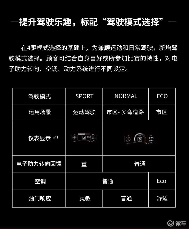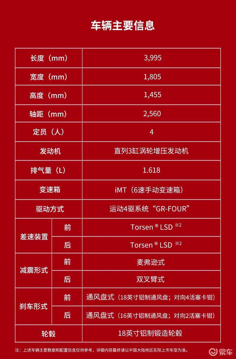 动力方面,新车依然搭载1.6T三缸发动机,不过针对进气、排气、喷油系统以及悬架系统进行了升级,提升操控性。传动方面新车匹配6速手动变速箱,并带有运动四驱系统。在四驱模式选择的基础上,为兼顾运动和日常驾驶,新增驾驶模式选择。顾客可结合自身喜好或所参加比赛的特性,对电子助力转向、空调、动力系统进行不同设定。