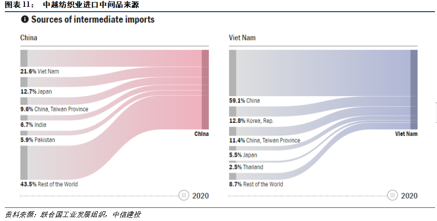 据联合国工业发展组织数据,越南纺织服装出口产品的主要附加值来源为中国,占比超过40%。