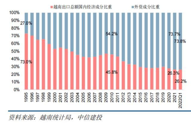 同时,越南劳动密集型制造业严重依赖中国的原材料和设备,2021年中国对越顺差在450亿美元左右。