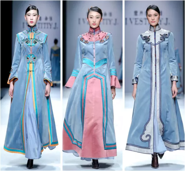 近年来时尚时装设计舞台上中国元素不断涌现,包括世界许多著名时装设计师争相把目光投向中国,用他们那双锐利的眼睛搜寻满足他们在时尚审美中所要表达的东西。在中国传统的服装中,强调的是线形和纹样的抽象寓意表达。它的设计从中透露出一种以含蓄和朦胧为美的表达方式,给人一种委婉简约的审美感受。西方人对服装则以造型为美,讲究与环境对比。中国传统服饰重“意”,西方服饰重“形”;中西方服饰虽然是两种不同文化的反映,呈现出各自的服饰文化特色,但在服装发展史中,我们时不时地会看到中西方服装风格的融合,而这种融合会绽放出一种夺目的光芒。在现代礼服的设计中,将中式服装的传统元素,如中国结、盘扣、立领等与现代时尚元素结合,展现出传统与时尚的碰撞。通过局部的中国传统元素应用,结合西方服装体系中的合体裁剪的设计手法,更好地表现女性的优雅、含蓄。将中国传统元素和当前服装的流行性相结合,做出符合现代人审美的作品,符合近两年对复古流行的诠释。随着服装流行的周期循环,在国际品牌服装发布会上中国传统元素的大量应用也是大势所趋。