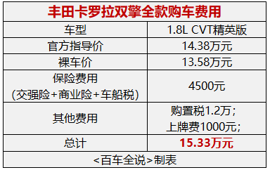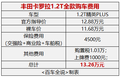 纯油卡罗拉主推12.88万的1.2T精英PLUS版,优惠1.2万,全款购车总价约为13.26万。双擎主推14.38万的精英版,优惠8000块,全款购车总价约为15.33万。