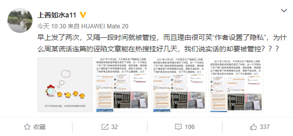 值得一提的的是,张某妻子在微博最初的发声,被限流了……