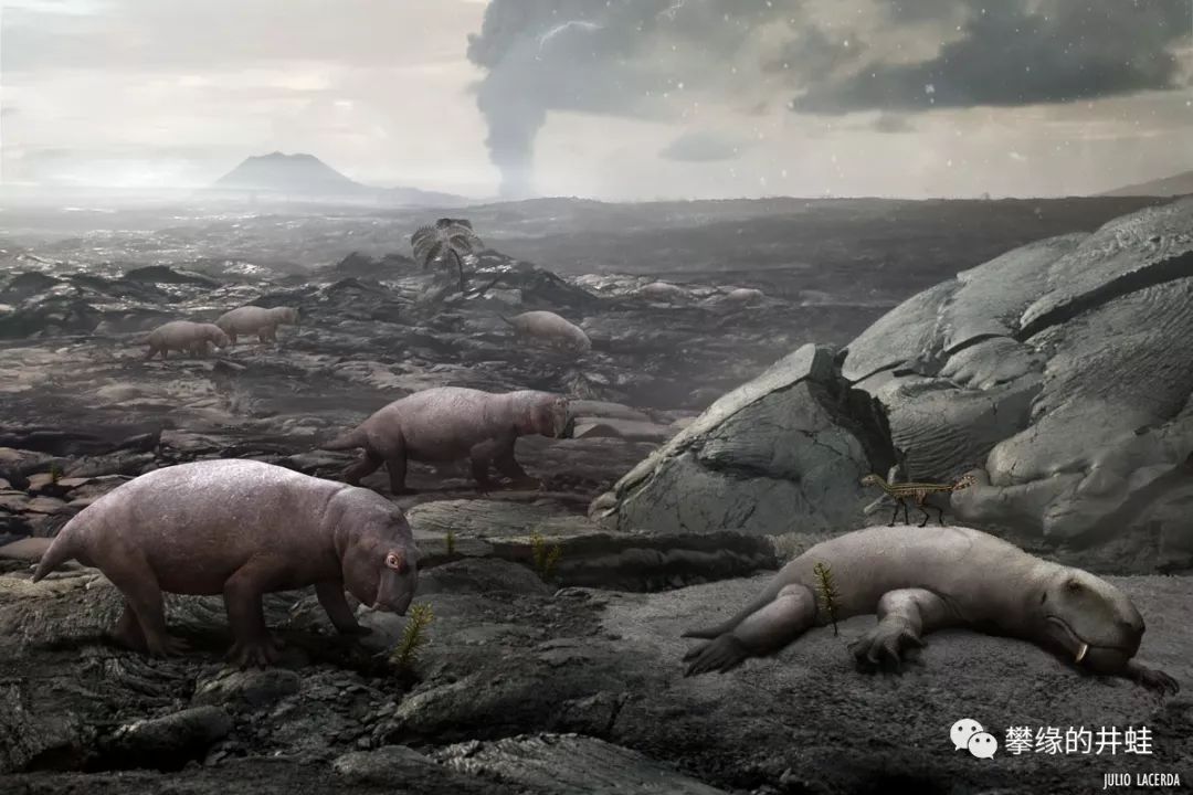 二叠纪的动物不得不在在熔岩,高温,烟尘和毒气中垂死挣扎。图片来源间水印。