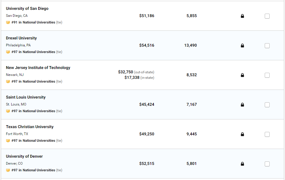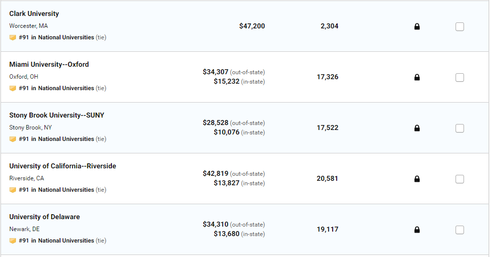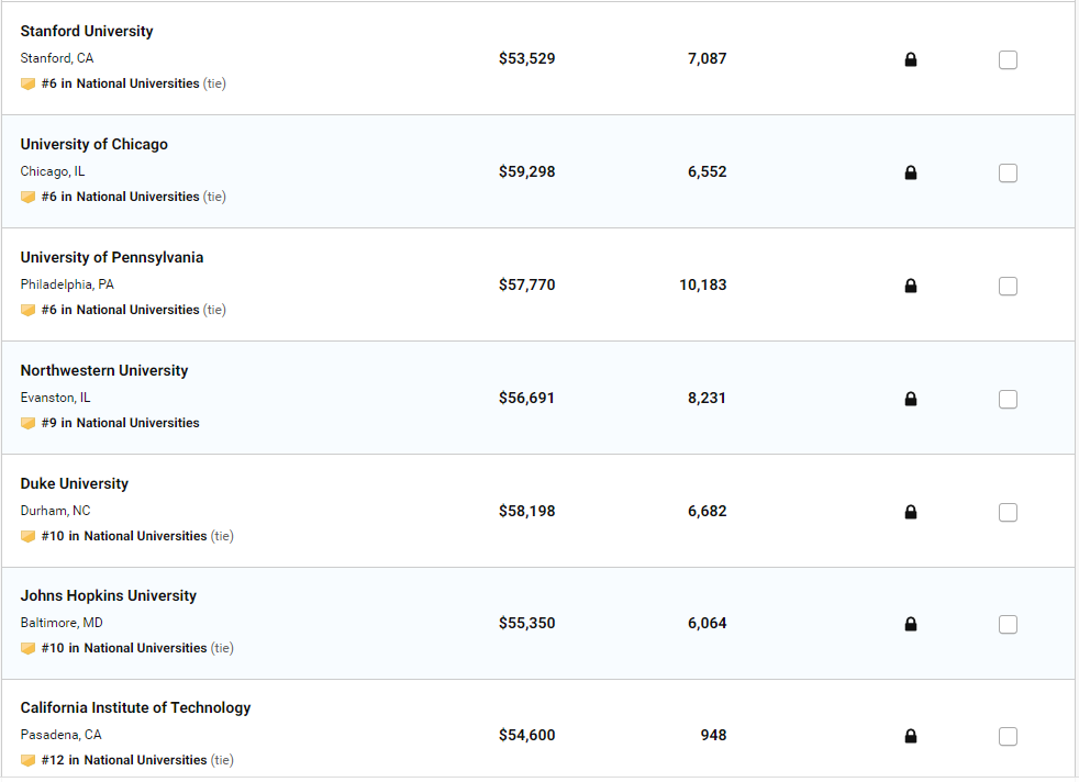 以下是2020年美国大学 前100名的榜单↓↓↓