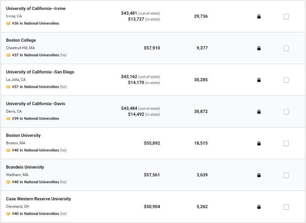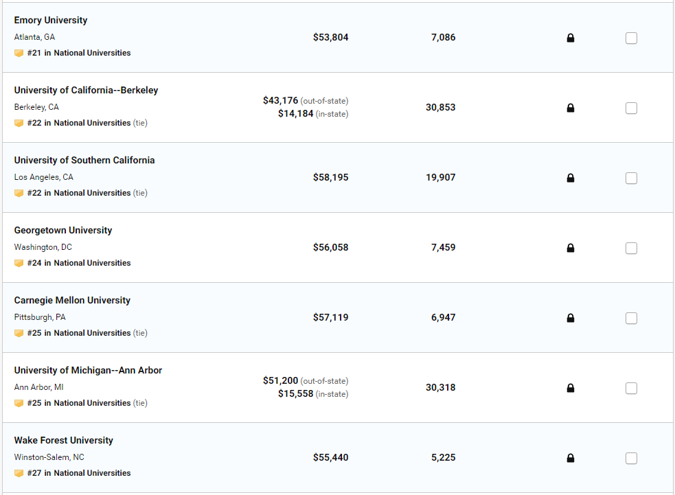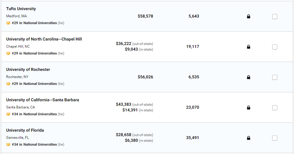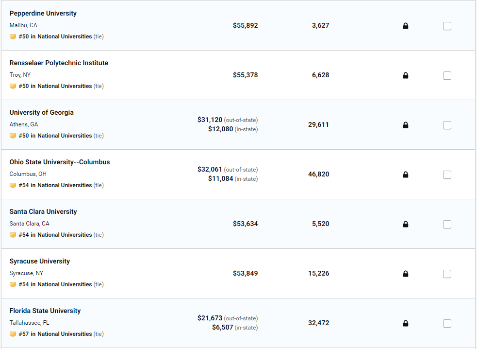 罗切斯特、乔治亚理工、纽约大学紧跟去年UCSB的脚步,逆袭成功,成功杀入Top30精英院校圈。