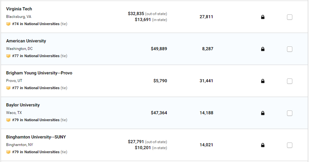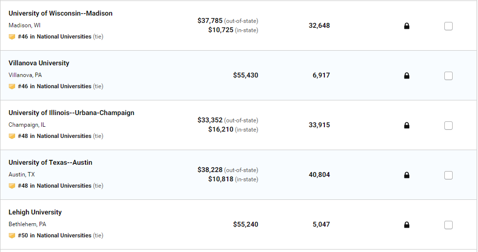 它们可以让你根据一些被广泛接受的优秀指标,如第一年的学生保留率、毕业率和师资力量,对美国大学的相对质量进行比较。