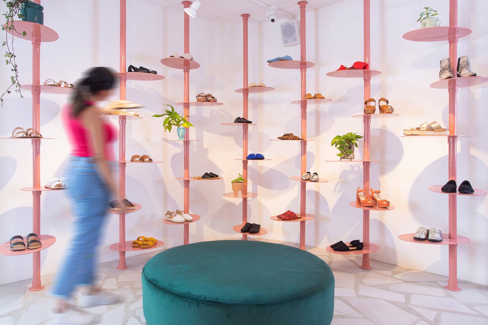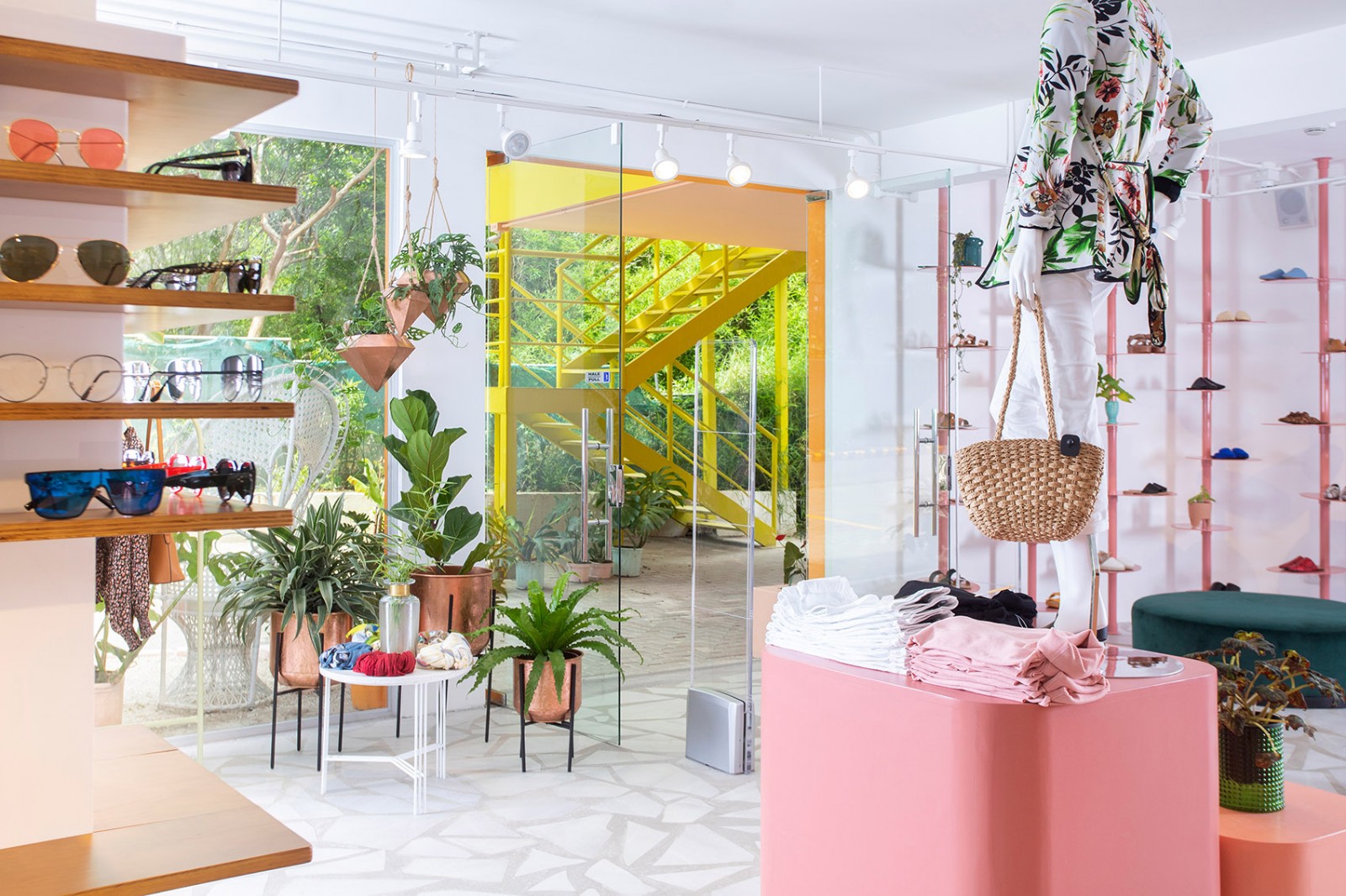 Taller KEN联合创始人兼主持建筑师Inés Guzmán说:“外观是环境的结果。圣何塞郊区之前还是一片农田,直到最近,它才变成房屋、便利商场和购物中心社区组成的封闭式社区。对我们来说,这个项目是一个能使独立建筑‘脱颖而出’的机会,同时赋予周边环境以清新、时尚和靓丽的氛围,突破毫无新意的标准用色。”在室内装饰上面,分层的颜色和纹理不仅增加了空间的深度,并且非正式地划分了功能元素和商品。 “建筑的三层空间让我们有机会在同一家商店内创造出三个微妙的世界,”Guzmán说。一层空间通透明亮,地板由陶瓷碎片铺就而成,主要陈列家居装饰、配件和礼品。