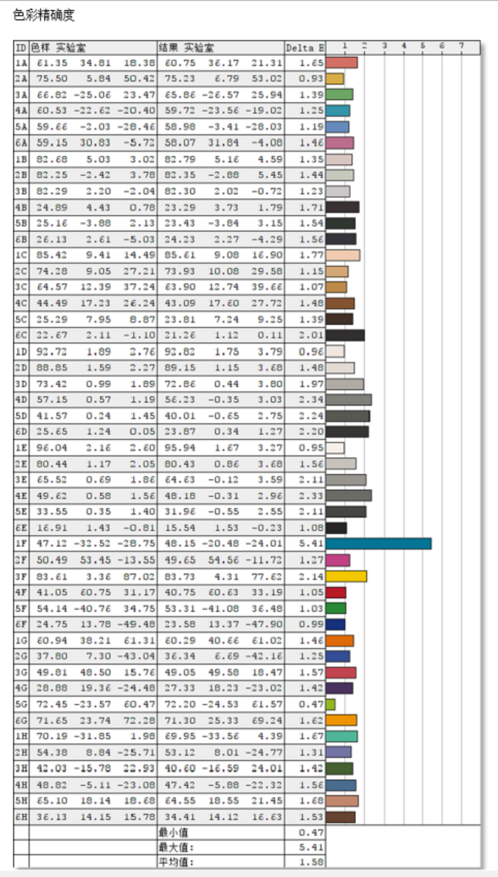 最后在色彩精准度方面,色差最大5.41,最小0.47,平均 ΔE为1.58,整体色彩准确性还是不错的,而且这还是一款2K分辨率165Hz高刷新的游戏本的色准表现哦。