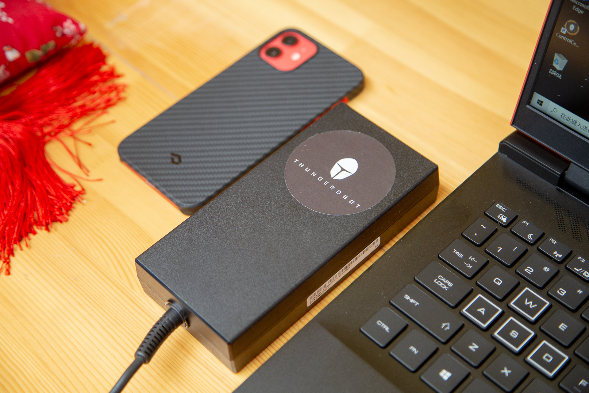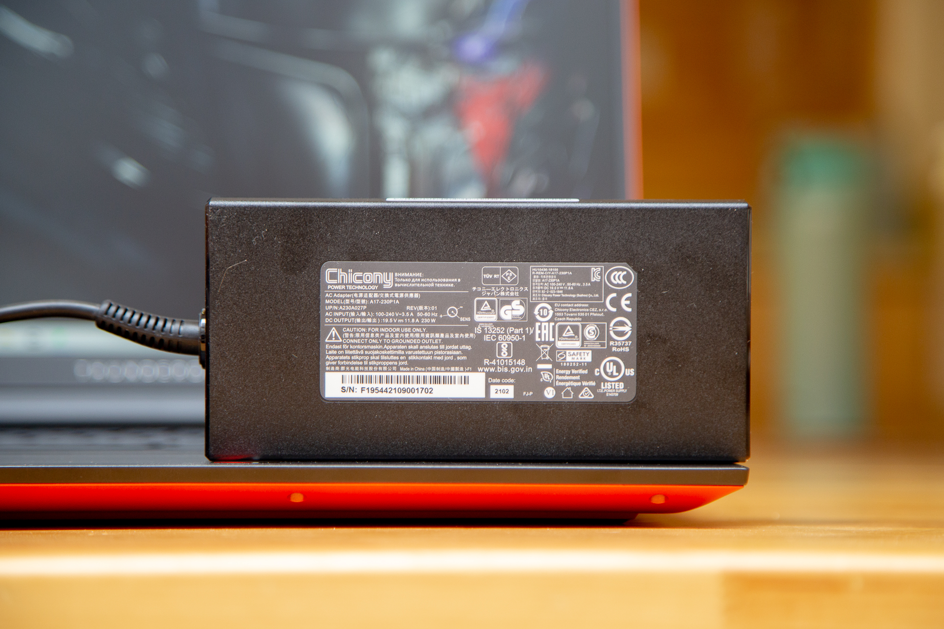 开箱的部分也提到了,随机标配的是一个230W的电源适配器,满载时可以为笔电提供稳定的输出。