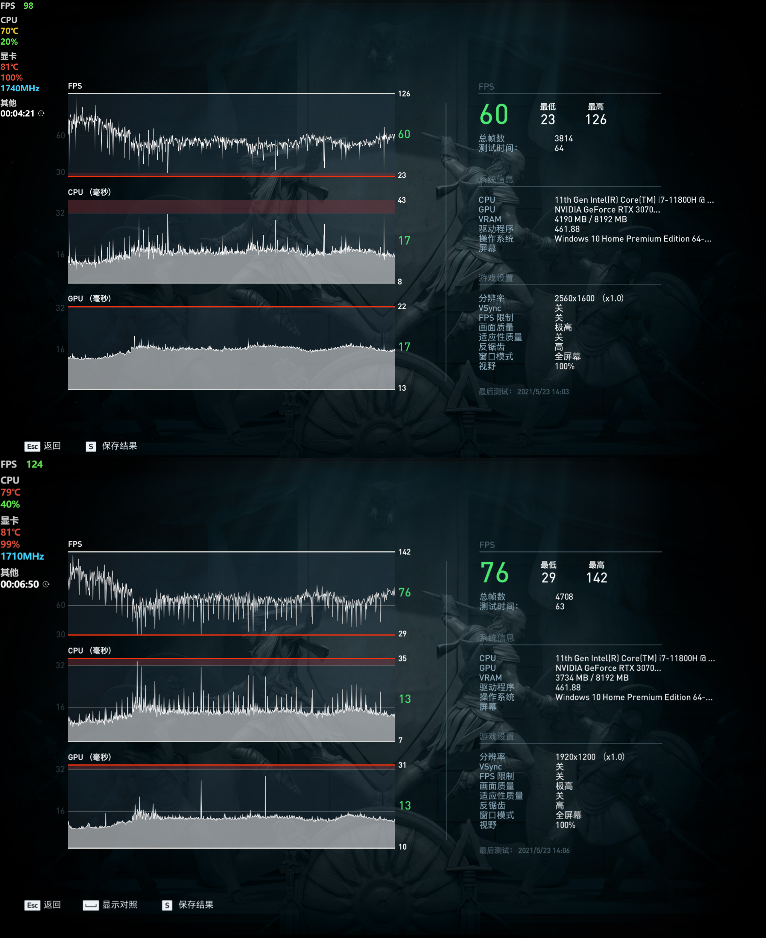 对于i7-11800H+RTX3070的表现我还是非常期待的,参数方面放在后面说。这里先聊聊实际游戏表现,而且目前在今年intel 11代发布所带来的2K 165Hz屏幕素质的游戏本也是第一次给大家带来,之前市面上主流的选择就只有1080P 144Hz这样的产品。