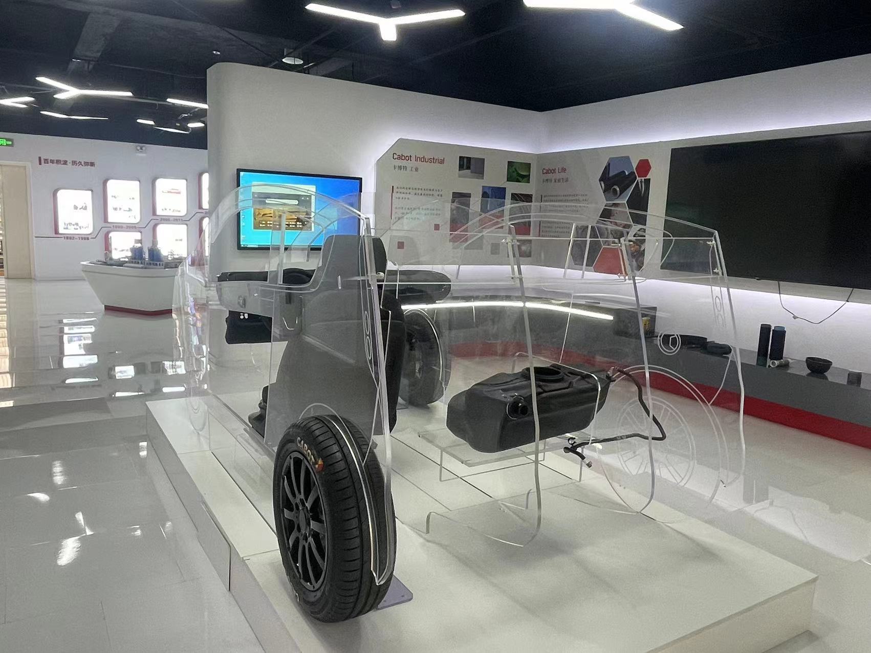 卡博特生产的特种炭黑广泛用于电子、电缆、高能电池、感光材料、纺丝、印染及冶金等很多领域。上图为卡博特(徐州)展厅。