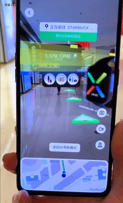 据了解,目前深圳春笋及深圳湾万象城已完全完成扫描建模,可通过手机体验室内AR导航。现场工作人员为VR陀螺现场演示了该应用(AR体验暂无开放App入口),从B1楼发布会会场导航至1楼的星巴克。通过图像识别,AR导航标志始终稳定显示在地面上方,即便转移手机方向,画面中也会提示出正确的路径,引导回到原方向。据称,该技术未来可能会用到AR眼镜上。
