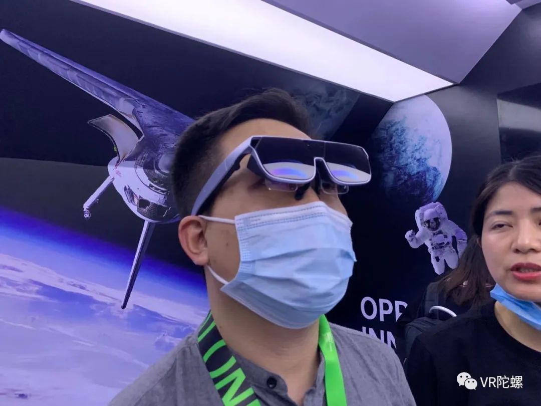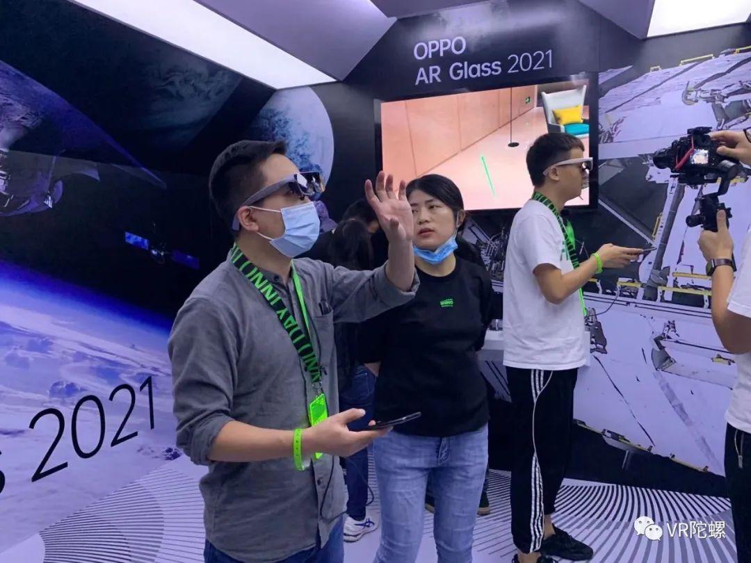 OPPO AR Glass 2021针对近视以及不同脸型的用户配有各种度数的近视镜片及鼻托,整体佩戴体验舒适,VR陀螺在现场体验了约30分钟,并不会感觉到重量压迫。