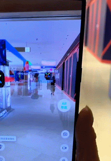 OPPO AR Glass 2021支持空间定位及手势识别。Slam通过ToF镜头、双目鱼眼摄像头和IMU共同组成,据称可实现厘米级、1°以内定位精度。ToF镜头分时进行环境扫描及平面检测,双目鱼眼摄像头实时扫描环境和局部地图构建,完成三维空间定位计算。经过现场测试,其Slam定位整体还算稳定,当围绕虚拟物体快速转圈的情况下,会发现虚拟物体产生些许位移和抖动。