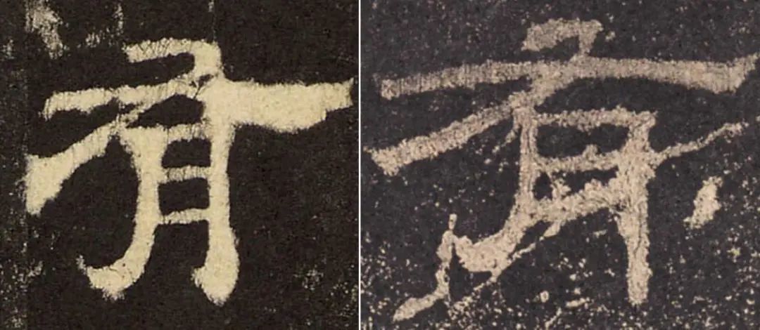 (左图为《西岳华山庙碑》,右图为《乙瑛碑》。对比前一图中《张迁碑》的“有”字,不难发现它们在笔画①的书写技法上基本是一致的)