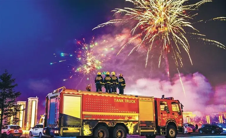 除夕夜,黑龙江双鸭山市的消防队员在岗位坚守。