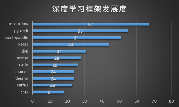 Figure 2 十大深度学习框架发展程度(caffe,caffe2分开统计)