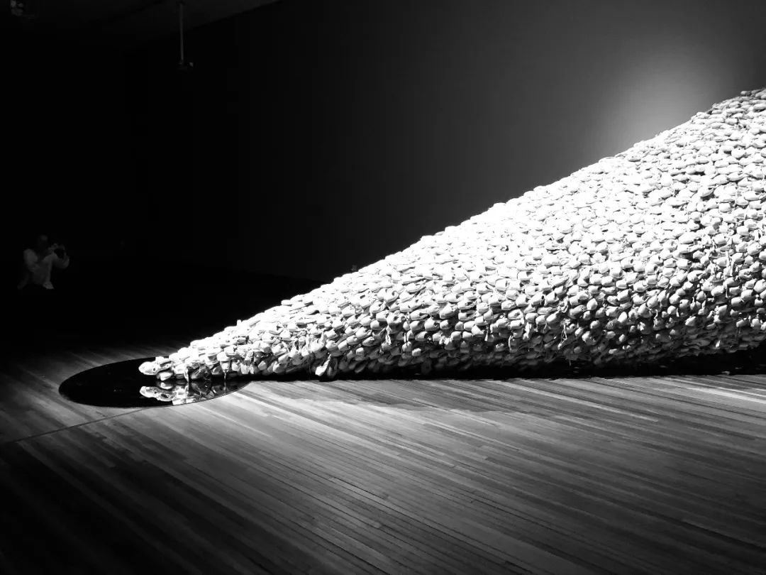 The main part of the artwork:The artwork is made up by more than 1000 pairs of ballet shoes.The shoes werecolleted from The National Ballet of China.It is a 6 meters high and 2.5 meters in diameter conical installation.Each pair of these old ballet shoes carries a unique story of a dancer,and these old shoes are the representarion of the beauty and classics of ballet dance.The sound of ballet shoes hitting the ground is reverberated in the exhibition space.