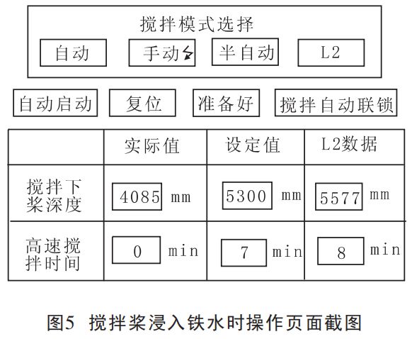 (2) 将搅拌桨浸入铁水里 (接近 1/3 的位置) 记录此时的数码。图5 为搅拌桨浸入铁水时操作页 面截图。