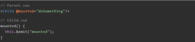 比如有父组件 Parent和子组件 Child,如果父组件监听到子组件挂载 mounted就做一些逻辑处理,常规的写法可能如下: