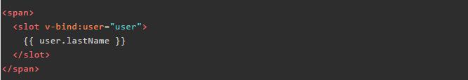 这种方式不会生效,因为 user对象是子组件的数据,在父组件里面我们获取不到,这个时候我们就可以通过 v-slot来实现。