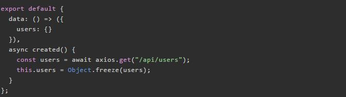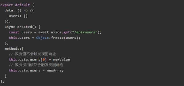 另外需要说明的是,这里只是冻结了 users的值,引用不会被冻结,当我们需要 reactive数据的时候,我们可以重新给 users赋值。