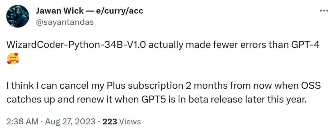 还有人表示,WizardCoder-Python-34B-V1.0 要比 GPT-4 犯的错更少。