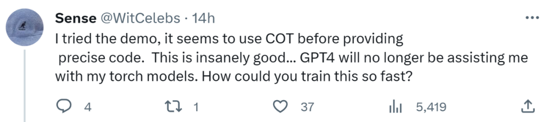 有人表示,在试了 demo 后发现,提供准确代码之前似乎有 COT(思维链)在起作用,这非常棒。