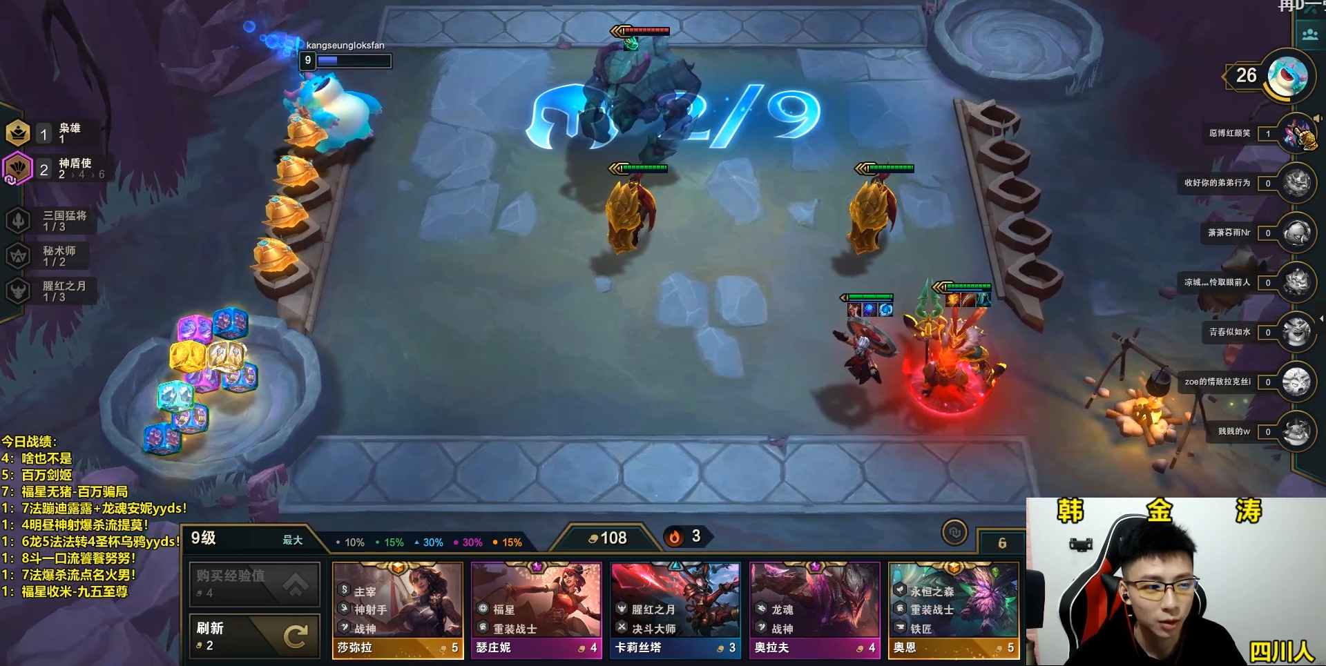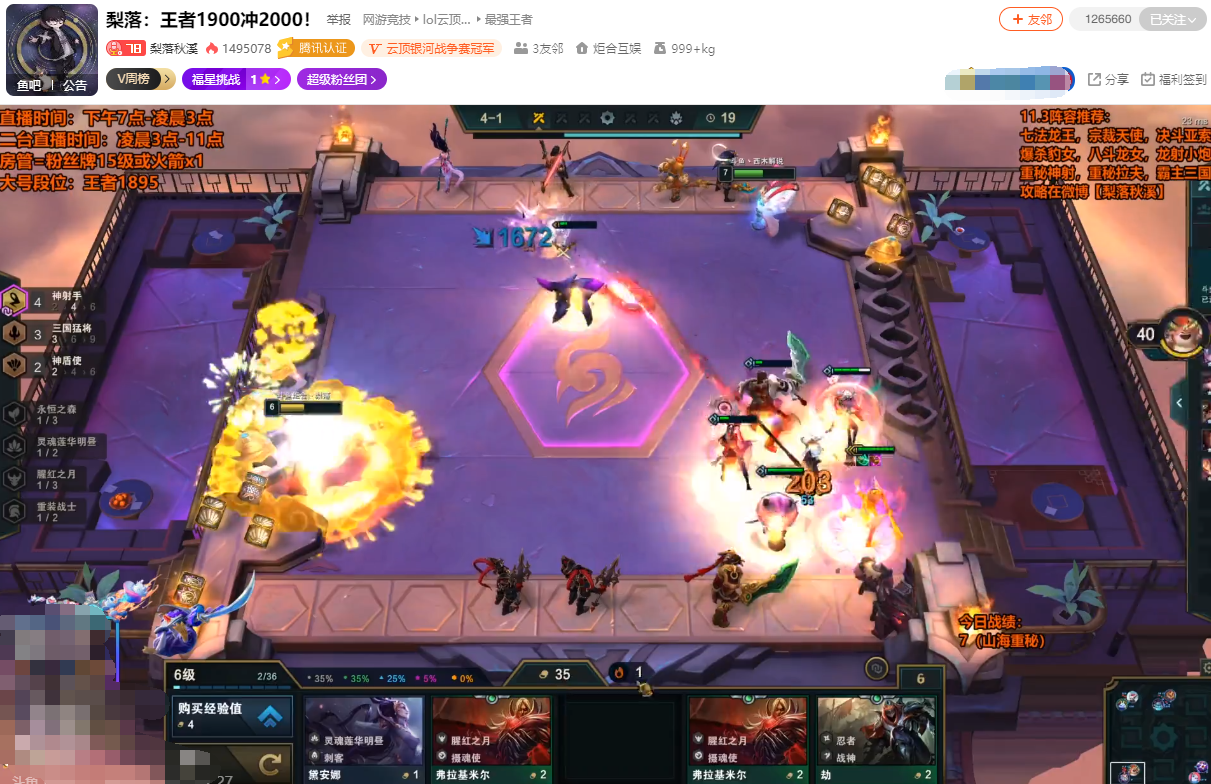为了给大家过过眼瘾,笔者刚刚从他直播间截取到一个画面,这一局也是阿涛从福星法师连胜转天赋神盾3星沙皇,给沙皇带了水银、龙牙、正义之手。开局有水银不仅无法控制,而且龙牙超高的减魔伤害让他彻底抗住爆发伤害,沙皇一个大招就满屏幕的6000+伤害,任何3星棋子触及融化。但这一局为了求稳,他拿了一个时光吸引高攻速卡莉丝塔拔矛,如果是3星乌鸦的话完全可以真正1V9了。