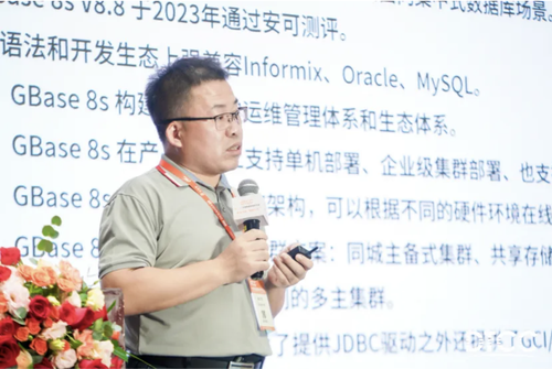 在大会分享中,GBase 8s产品经营部总经理崔志伟系统回顾了GBase 8s 十年间逐步构建自主产品体系的发展历程,期间共发布七大版本,持续增强系统兼容与安全能力,包括支持Oracle语法模式、PL/SQL、MVCC并发控制、多种索引类型、多时区支持等企业级功能,并多次获得等保四级、EAL4+、商密资质等权威认证。GBase 8s 在共享存储集群方面实现对Oracle RAC的对标,支持同城双活、异地容灾、多主集群等架构,故障切换RPO=0、RTO<3秒,线性扩展比达0.7,在银行核心交易等高压场景中表现稳定。