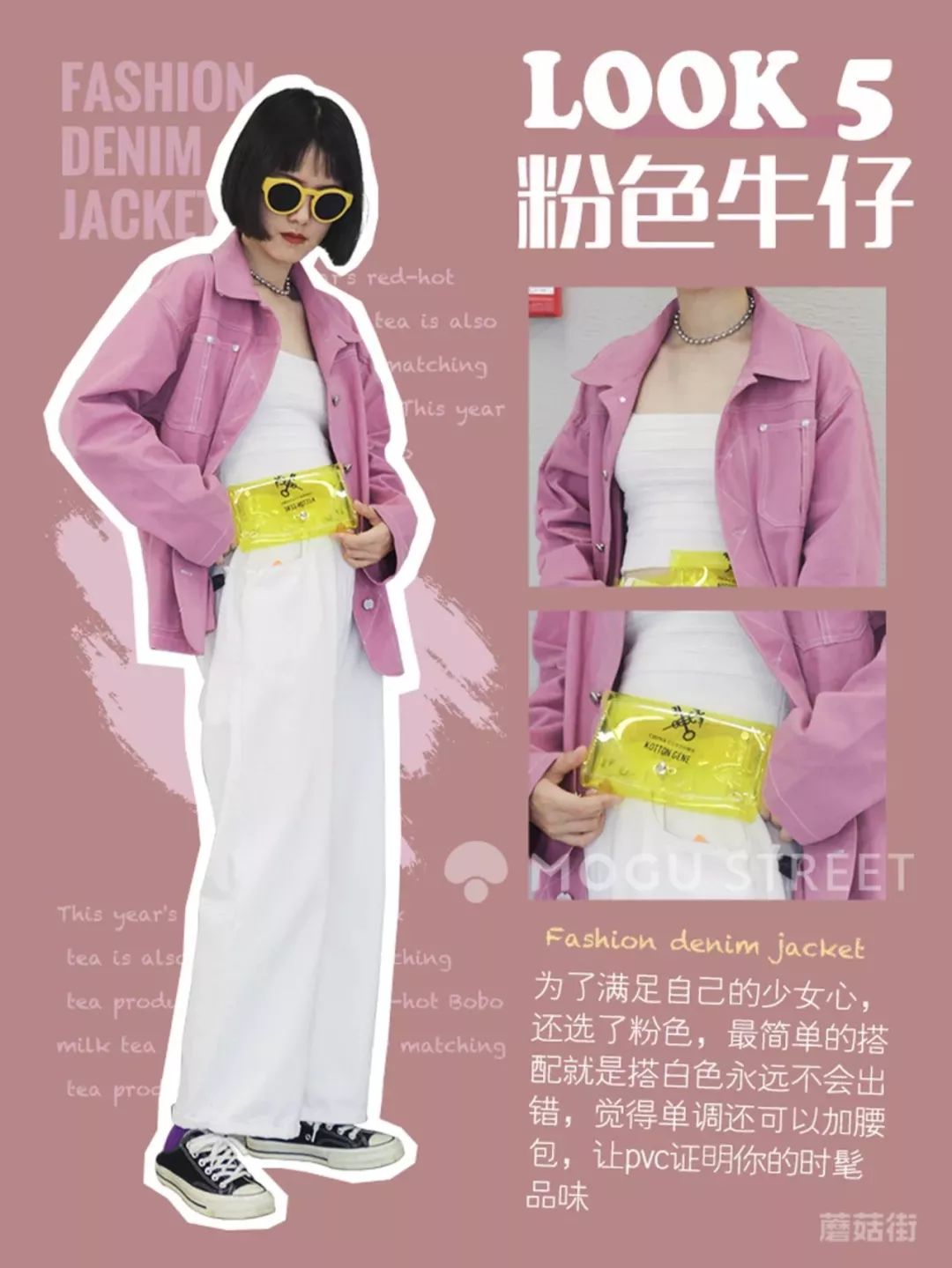 满足少女心当然少不了粉色啦!甜美的粉色和酷酷的牛仔外套相结合,很好的平衡娘man范儿,搭配白色永远不会出错,扑面而来的小清新气息。