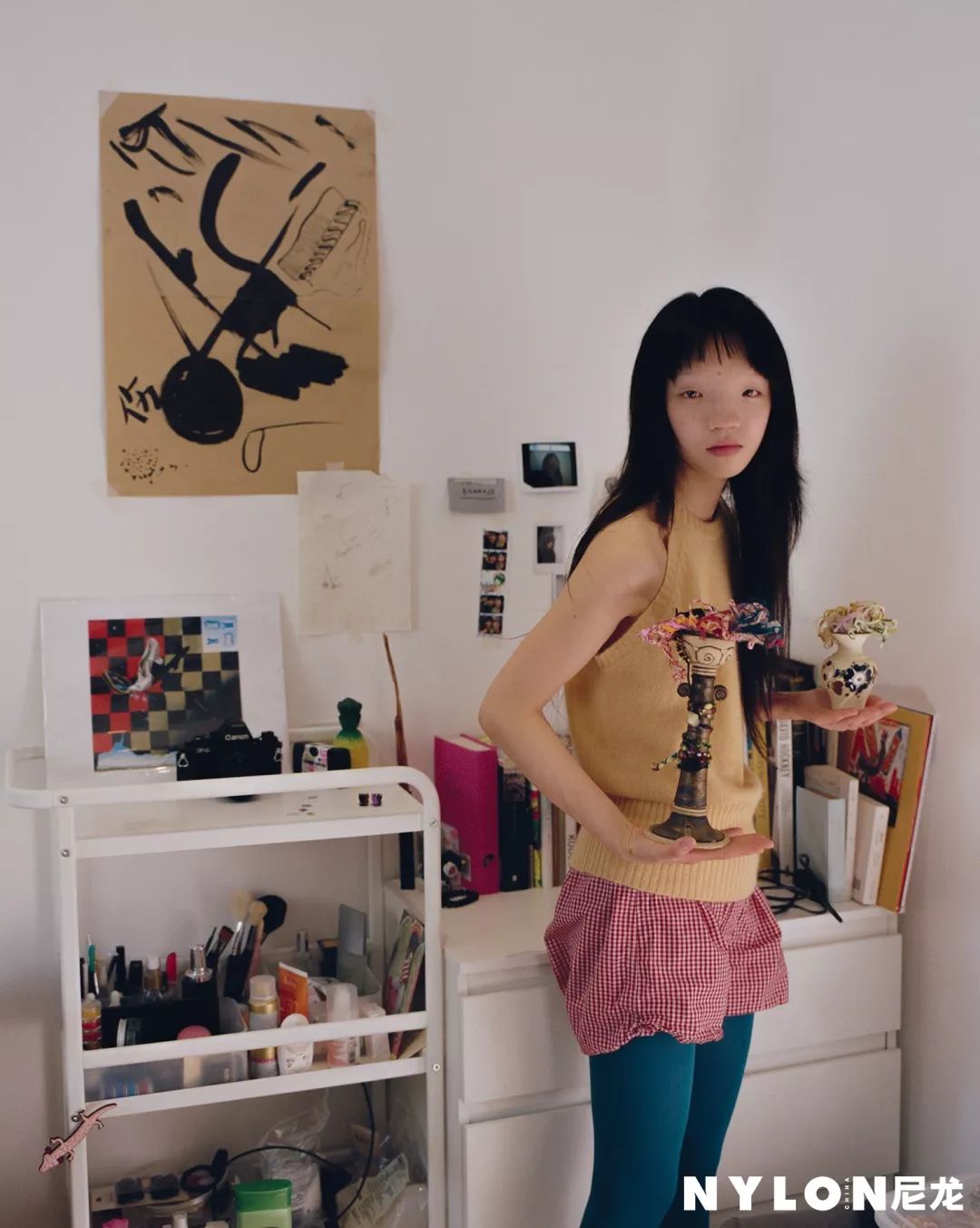 她参与过《VISION青年视觉》杂志的大片拍摄。被VOGUE报道过,还因此登上了热搜。但她似乎不以为意。她说自己现在照样在地铁上睡觉,出门五分钟前才决定要穿什么衣服。这份不以为意有自我个性的使然,与此同时或许也带了点不愿随意妥协的倔强——因着那次意料之外的热搜。