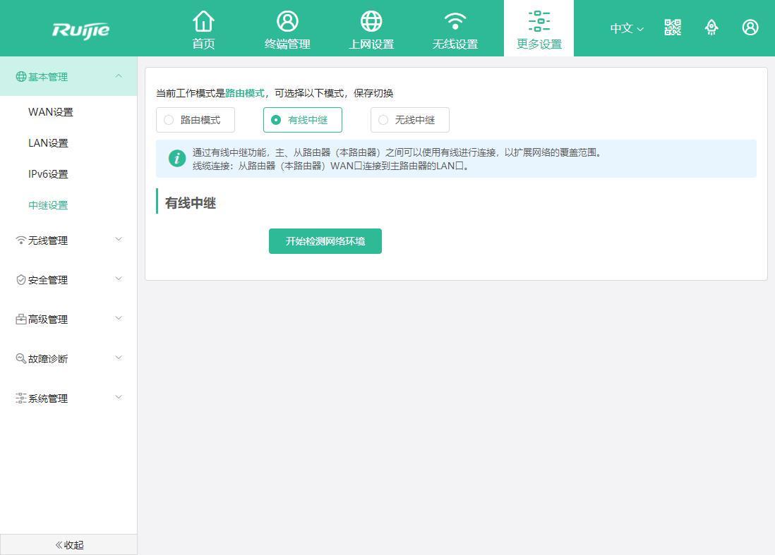 当下固件支持iPv6。但是这个中继模式和别家有点差别。路由模式和无线中继我都懂,目测这个有线中继功能就相当于是无线AP吧?