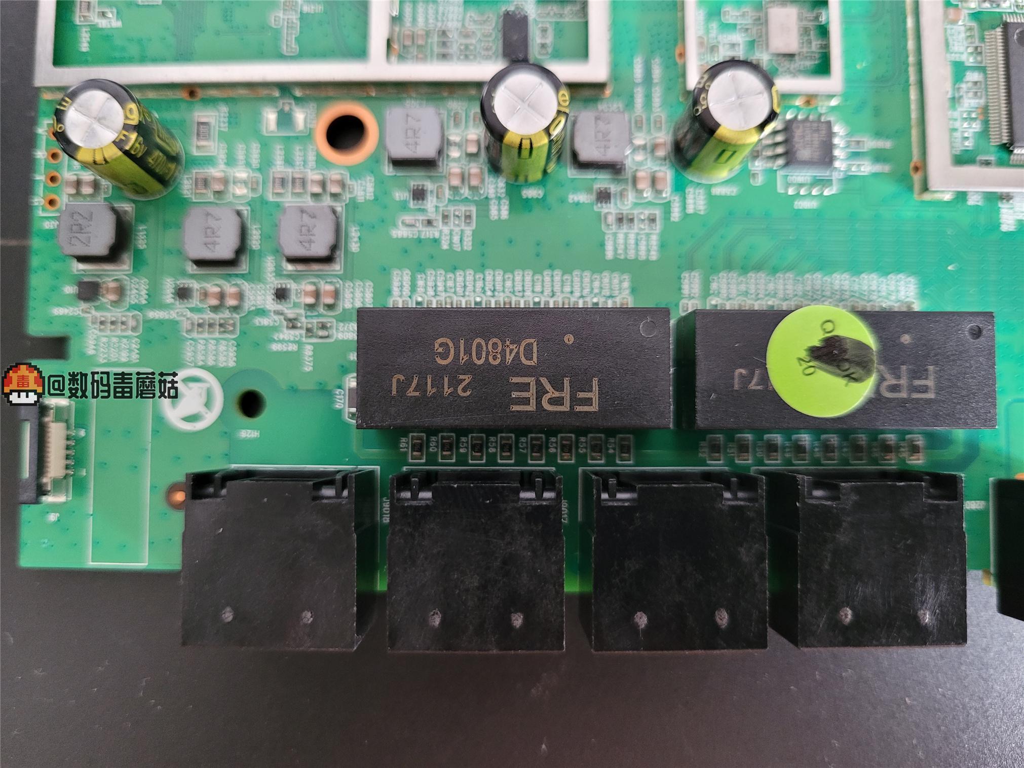 无线方面:处理器负责2.4G信号输出,配有SKY85331-11独立功放;5G无线电路由两颗芯片组成,分别MT7915AN和MT7975AN,5G功放芯片为QORVO4516。