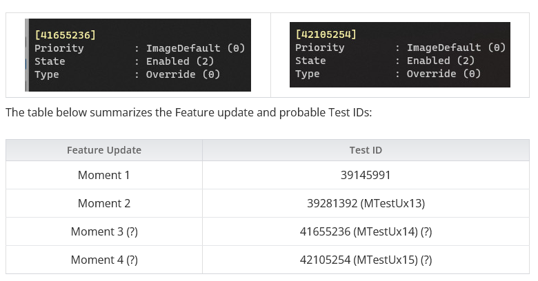 在今天发布的 Build 25262 更新中,PhantomOcean3 发现微软可能将这些 Moment 更新称之为“MTestUx”。最新 ID 为“42105254”的“MTestUx15”是在之前的 Windows 11 Beta Channel 预览版中发现的。