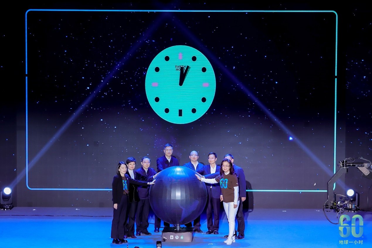 在全球瞩目的熄灯环节,各界代表上台启动了地球熄灯装置,现出地球家园自然本真的色彩,象征了在众人的努力下,地球自然生态系统焕发生机。随即全球地标建筑同步熄灭不必要的景观灯一小时,整场活动在“关上灯,点亮希望”的呼声中走向高潮。