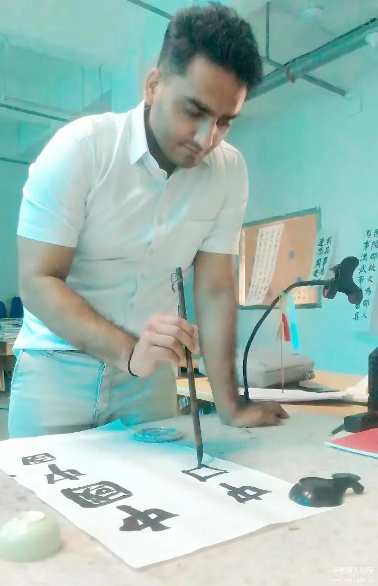 Jafar Hussain博士喜欢艺术,他以书画歌颂医护人员和为防控疫情作出贡献的人,把满满的正能量和战疫必胜的信念传递给南理师生。